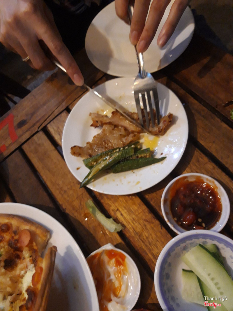 6.6H-P PizzaQuán hơi chật, mà có đồ nướng với lẩu nữa,nên hơi bị ám mùi sau khi ăn xong. Nhưng được cái quán cũng khá sạch sẽ. Kiểu đồ ăn tây nhưng giá tiền lại Việt Nam. Đồ ăn ổn, Pizza rất thơm và ngon, nhiều phomai nên mềm lắm. Ba người ăn một cái là đủ rồi, đã cơn thèm. Món nướng thì ngon có nhiều lọi thịt như bò,ba rọi, đà điểu để mình chọn, nướng cuộn với xà lách tươi xanh chấm nước tương kiểu Hàn Quốc mà ngon lắm. Quán khá đông khách nên phục vụ hơi chậm. Nhưng mình vẫn sẽ quay lại ...Xem thêm
