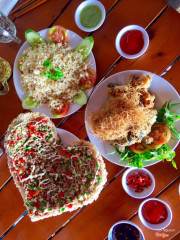 Bạn mình hay ghé quán, anh ấy dắt mình đến vài lần để uống nước, thả hồn sông nước vẽ tranh hoặc ngắm cảnh hoàng hôn tuyệt đẹp.... Quán khá vắng nên cũng yên tĩnh, thi thoảng nhóm bạn hoặc nhóm gia đình họ cũng ghé nhưng chủ yếu chọn chòi lá ngồi, như thế riêng tư hơn. Món ăn phong phú và cũng lạ. Bày trí đẹp mắt và giá cũng ổn. Món trái tim đồng quê khá đặc biệt, có thể viết chữ theo yêu cầu ;)) Ếch ủ rơm thì con ếch to mập, da chiên giòn và phủ bột thơm thơm beo béo. Cơm chiên tỏi bình thường nhưng chiên hơi cháy xém và thêm tỏi bằm sẽ ngon hơn. Các em phục vụ chu đáo, nhanh nhẹn và vui vẻ lắm. ...Xem thêm
