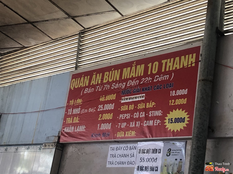 7.2Bún Mắm Mười ThanhBún mắm ở đây ngon, cọng bún nhỏ, hơi khác các quán bún mắm khác là phần cá để riêng, ăn đầu cá thì giá cao hơn. Mình thích ăn cá cho nên cá ở đây tươi mình rất thích. Quán có bán buổi trưa, trưa mà nóng thì ở đây khá nóng á. ...Xem thêm