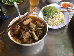 2.8Ngon nhưng quá ít và mắcLần đầu tiên vào ăn thấy quán khá đông nên nghĩ chắc ngon nên vào ăn thôi chẳng đọc review gì cả. Mình với bạn gọi 2 tô bún và 1 dĩa gỏi thịt hết 120k. Lúc đem ra thấy khá ngon mắt còn có da heo sa tế chiên giòn rất ngon. Tô thì rất là to nước thì rất là nhiều mà có mấy cọng bún với xíu măng à gắp vài đũa là hết ráo. Dĩa gỏi thì nhìn rất hoành tráng nhưng toàn rau độn không hà, thịt thì cắt rất mỏng và có mấy lát trên mặt thôi còn phía dưới toàn rau với rau. Không biết do mình ăn nhiều hay sao mà chả thấy no gì cả. Cảm thấy không xứng đáng với giá tiền cho lắm. Sẽ không quay lại. ...Xem thêm