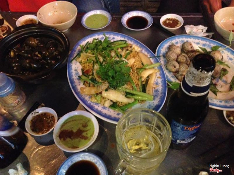 8.0Đồ ăn tươi, giá đúng giáỞ đây độc nhất là sò huyết nhe, tươi và mập mạp ngon lắm. Trong hình có sụn gà, mực và bắp xào. Quán chế biến hơi lâu (vì đông quá) được cái rất vừa miệng. 4 người ăn, chia ra mỗi người 95k cho chầu này :)) Hôm nay đi ăn xui quá mạng, có người gây hấn đập bể ly phải báo CA luôn. ...Xem thêm