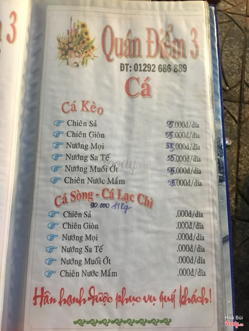 8.0Review cho Điểm 3 cùng hệ thốngĐịa chỉ: Trên đường Võ Văn Kiệt, chạy hình như vừa qua cây xăng là đến, có bảng hiệu Điểm 3 cũng nổi bật, cùng bên với Bò Tơ Năm Sánh. Không gian: quán nhậu bình dân nên cũng không có không gian gì để nói, thoáng, đỡ dơ hơn Điểm Nguyễn Văn Linh. Đồ ăn: khá ngon, giá tương đối, nêm nếm vừa miệng, nay đến lúc quán có ít khách nên phục vụ tạm gọi là chu đáo, đồ ăn ra nhanh, sò điệp to, nước mắm chấm kèm sánh, ngon. Mì xào mực vừa vị, mực nay không tươi như mọi lúc, dù vậy cũng ổn. Có ăn khoai tây chiên nữa. 3 món với 2 chai nước ngọt 145K, 2 đứa ăn cũng no. Nhược điểm: bảo vệ mướn về làm gì không biết, khách đến thì hai người chẳng quan tâm, lo bấm điện thoại, nhiều quán người ta nhiệt tình dễ sợ, thấy con gái chạy là kêu đậu đại để dời, còn mấy anh bảo vệ quán này á hả? Tự chạy vô tự dắt ra, sợ ghê, ngồi đó để thờ chứ không phải để trông xe quá. Bù lại bạn nhân viên vui tánh. ...Xem thêm