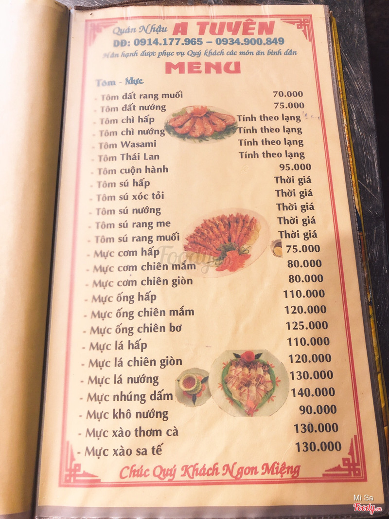 7.0A Tuyên Quán - Nhậu Bình DânQuán nhậu này có vẻ nổi tiếng với món bò cuộn lá lốt. Lá lốt cuốn ngoài miếng thịt tẩm ướp ngon, tuy hơi khô. Ăn cũng okie. Mấy món nhậu khác thì ở mức ăn được. Quán phục vụ nhanh nhẹn, đồ mồi ra nhanh. ...Xem thêm