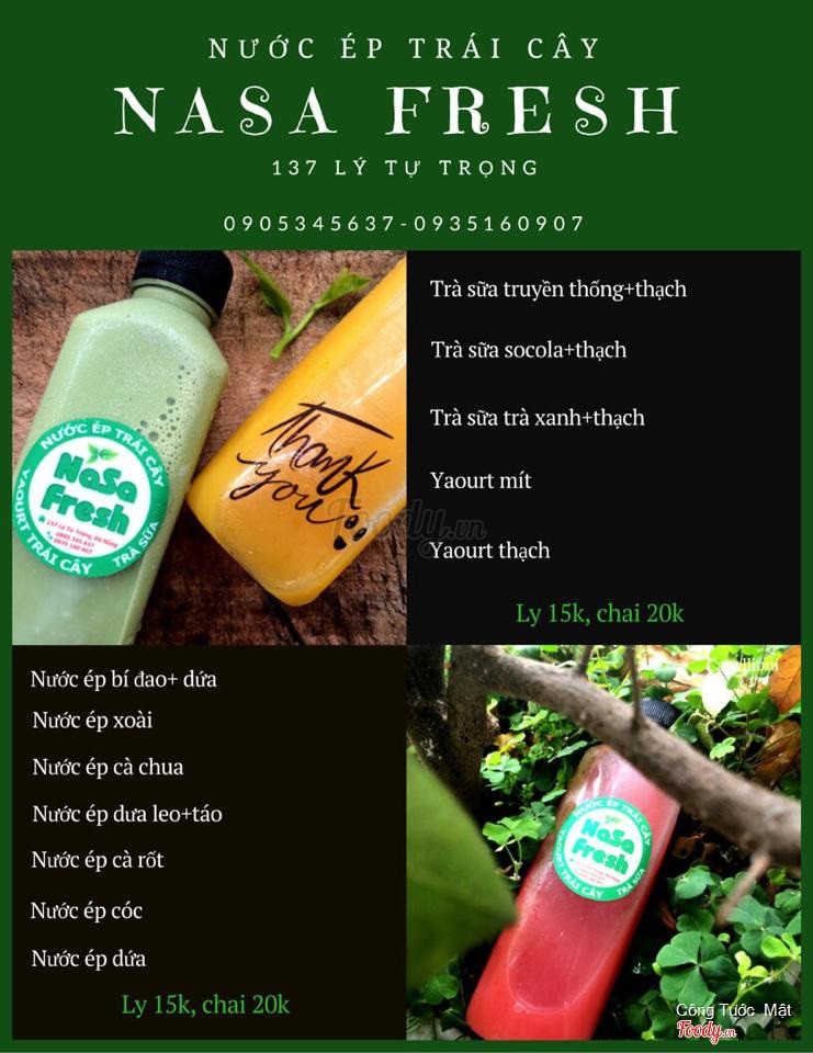 8.0NaSa FreshLại thêm 1 quán nước ép mới mở. Quán mở cửa từ 4-5h chiều đến tối, ban ngày vẫn bán nhưng nhận ship, còn tối thì kéo tủ ra có vài bộ bàn ngồi uống tại chỗ. Menu gồm các loại nước ép trái cây như: xoài, cóc, ổi, cà rốt, cà chua. Có thêm trà sữa và yaourt trái cây nữa. Mình mua 2 chai nước ép: 1 ép cóc và 1 ép xoài, bỏ chai siêu cute, 20k/1 chai, nếu ngồi tại quán uống ly thì 15k thui nè. Uống vừa miệng, đậm vị lắm. Trên chai có logo và phía sau có chữ Thank you nhìn dễ thương hehe. ...Xem thêm