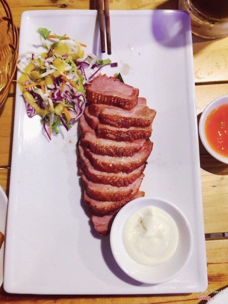 7.6Ngon ✌️🍖 Đợt hè ra đây măm măm chứ đợt này lạnh, nghe đến ra beer ngồi là các bạn của mình ko hưởng ứng rồi :)) - Không gian ở đây rộng, chia thành 2 khu, ngồi ngoài thoáng mát hoặc ngồi trong điều hoà. Khu nào cũng có quạt hơi nước công suất lớn, mát thì có mát mà nước cứ bay vào mặt hơi không ổn :( - Đồ ăn mình thấy ở đây chế biến được, sụn gà rang muối miếng không bị nhỏ quá, ăn giòn rụm, tẩm ướp vừa miệng. Vịt hun khói nướng - món này mình thích nhất, lần nào ra cũng gọi luôn, sốt chấm cùng ăn cực hợp luôn. - Ở đây hay có nhạc sống, mời ca sĩ về hát, và khách đăng ký bài thì lên hát luôn. Hôm trước mình ngồi ăn, thấy có mấy anh chị hát không được hay vẫn lên hát cho vui ý :)) - Nhân viên phục vụ hơi lâu chút, chắc do đông khách quá. - Giá cả mình thấy hợp lý, không hề cao. ...Xem thêm