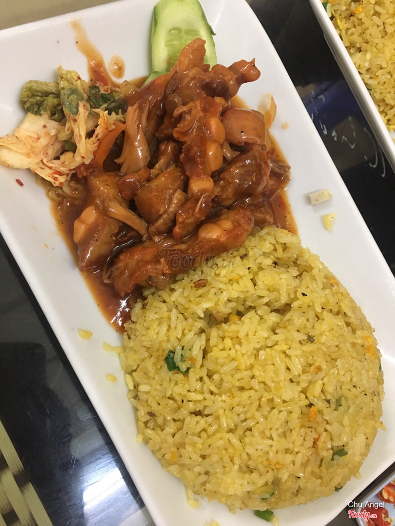 7.0OkM đặt suất cơm rang gà quay tiêu thấy cũng tạm ổn. Cơm rang ngon thật sự, k nhiều dầu hay bị khét, hạt cơm rang dẻo và giòn, thơm. Về gà thì m thấy vị giống kho tàu hơn là sốt bbq, nh sốt chan cơm khá ok, đùi gà thì k ngon, thịt khô đét như đùi gà cũ ấy. Kim chi ăn kèm hơi bị chua quá. Có nước canh đi kèm nh vị rất dị, hôi và nồng mùi quế hồi, lần đầu tiên ăn phải cái nước canh vị dị như vậy luôn. Thỉnh thoảng mà thèm cơm rang sẽ quay lại, nh m sẽ order loại khác. ...Xem thêm