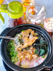8.4Cháo sườn ếch trứng bắc thảo - Thái Thinh[Cháo sườn ếch trứng bắc thảo - Thái Thịnh] 📍Đầu ngõ 63 Thái Thịnh ⏰4pm - 11pm 💲20k - 40k/bát Cháo sườn/ếch -30k/bát Cháo thịt - 20-25k/bát Trứng bắc thảo - 10k/quả Ngày xưa nghiện cháo niêu thật sự mỗi tội giá lại chát hơn cháo sườn đầu ngõ bn😭😭 nay kiếm đc hàng cháo niêu vỉa hè cũng ham hố thử xem sao. Nhìn chung thì cháo nóng hổi nhuyễn mịn, với đứa ăn mặn như tui thì nêm nếm hơi nhạt xíu nên phải thêm nước mắm. Đc nguyên cái đùi ếch to oạch mềm ngon nhiều thịt, sườn non vừa tới chứ k khó nhằn lắm. Mình thích nhất là trứng bắc thảo mềm mướt, béo ngậy, vừa miệng cực. Giá k quá chát như ngoài hàng mà lại đc bữa xế chiều ấm bụng, vừa đủ để còn chừa cơm tối nữa nha. ...Xem thêm