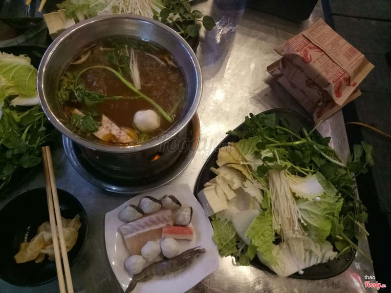 7.4Lẩu Ly SawadeeĐợt lạnh mình ngồi trong nhà nên ngồi ăn bí lắm. Mà ăn lẩu kiểu gì cháy đen cả bàn trông thật đáng sợ ;)) Nước lẩu chua cay vừa ăn, ngon. Có thể chọn k cay cho trẻ em, thêm hoặc bớt loại đồ nhúng. Ba chỉ bò hơi mỡ nhưng nhúng lẩu vẫn mềm ngon, thường xuyên bị đông đá. Tôm nhúng thường k đc ngon. Mình đi 2-3 ng thường gọi thêm 1 đĩa bò, tính ra 69k/nồi + 69k/đĩa bò, cả nước tầm 120k. Lần đấy thấy em nv đang rửa cốc bằng cái như cái cọ rửa bình sữa í, với rất nhiều xà phòng nên thấy sạch sẽ yên tâm, gì chứ uống nước mà nổi váng mỡ lên sợ lắm. ...Xem thêm
