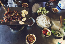 7.4Bò nướng ngói ăn okNghe danh bò nướng ngói Mĩ Xuyên khá nổi tiếng nên bạn mình chở đi ăn cho biết, đi 2 đứa thôi nên cũng không ăn được gì nhiều. Quán này khá bình dân, khách đông lắm nha có 2 quán sát nhau luôn, mình ăn quán phía trong. 1 phần bò nướng ngói gồm dĩa thịt bò, rau, bánh tráng, bún và mắm nêm. Gọi là nướng ngói thôi nhưng thật ra là nướng trên miếng tôn thì phải, cho ít dầu lên rồi nướng bò, bò mềm ăn ngon, mắm nêm pha ok. Giá cả không rẻ, không mắc, cũng hợp lý lắm. ...Xem thêm