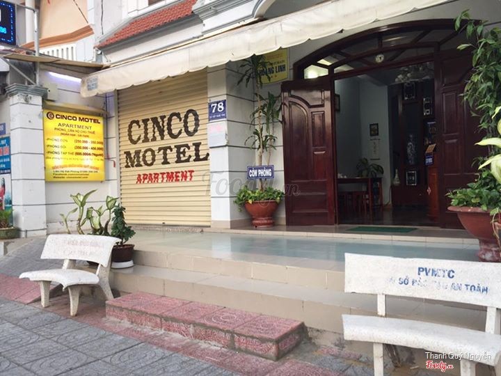 7.2Cinco HotelCinco nằm trên đường Xô Viết Nghệ Tĩnh gần bến xe Vũng Tàu nên rất thuận tiện cho những bạn đi xe khách ra ( đi bộ tầm 5p thôi). Gọi điện đặt phòng thì bạn chủ nhà tên là Linh (nói chuyện siêu thân thiện và dễ thương luôn í) hướng dẫn rất nhiệt tình. Phòng rẻ nhất là 250.000d (không tăng giá vào các ngày thứ bảy, chủ nhật và ngày Lễ). Phòng có bồn tắm, máy lạnh, tivi, tủ áo, bàn và ghế gỗ nhưng không có tủ lạnh (có thể gửi nhờ tủ lạnh của khách sạn). Có cho thuê xe máy 150.000d/ngày, nhưng nếu thuê 2 ngày thì chỉ 100.000d/ngày thôi! (Phòng có gián tuy nhiên có thể mượn bình xịt gián xịt) ...Xem thêm