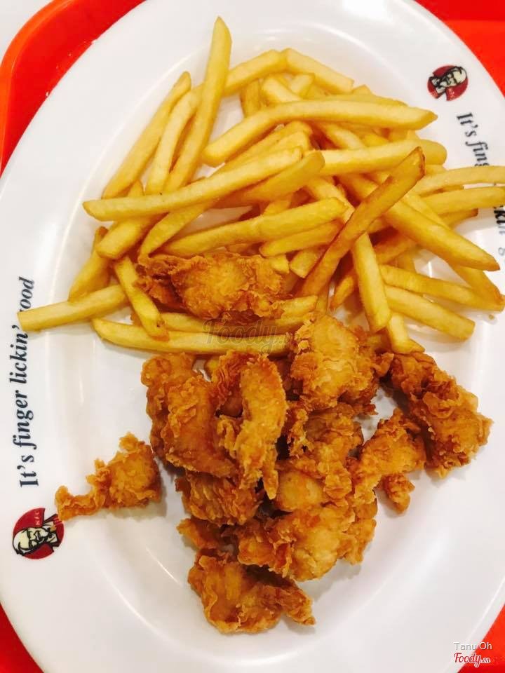 8.8Gà rán KFCMột trong những nơi bán gà rán ưng ý nhất. Sáng nay có việc sớm nên 2 đứa vào ăn gộp 2 bữa sáng và trưa luôn. Do hơi sớm nên hầu như gần bao luôn cả quá. Quá sang :))))) Nhân viên thì khỏi nói, do đào tạo chuyên nghiệp nên rất bài bản, rất chu đáo và luôn luôn muốn giới thiệu hầu như các gói khuyến mãi để khách "muốn" order thêm. Phần ăn của mình gồm 2 miếng gà, 1 burger, 1 gà popcorn với pepsi size lớn, tổng thiệt hại khoảng 150k. Vị gà ở đây rất đặc trưng, không lẫn vào đâu được, nhưng lại khó diễn tả. Đang có combo 49k cho khách 1 người cũng rất thú vị, để lần khác ghé lại dùng thử. ...View more