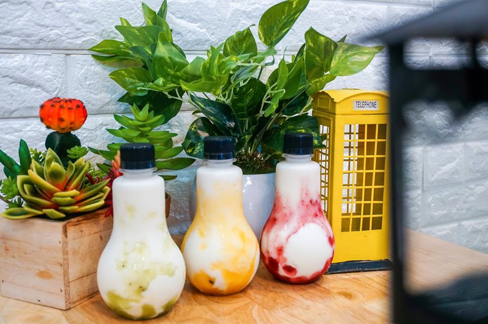Sau những lúc nhâm nhi mà có thêm một ly trà trái cây hay một ly yourt bóng đèn đáng yêu thế này thì ngất ngây con gà tây luôn rồi đúng hông nè. Một lần thưởng thức vị beo béo của yourt thôi mà dự vị vẫn còn đọng lại khó quên. Thêm nữa, ly trà trái cây đầy ụ mà còn đa dạng loại trái cây thế kia kìa, nhìn là thích rồi.
