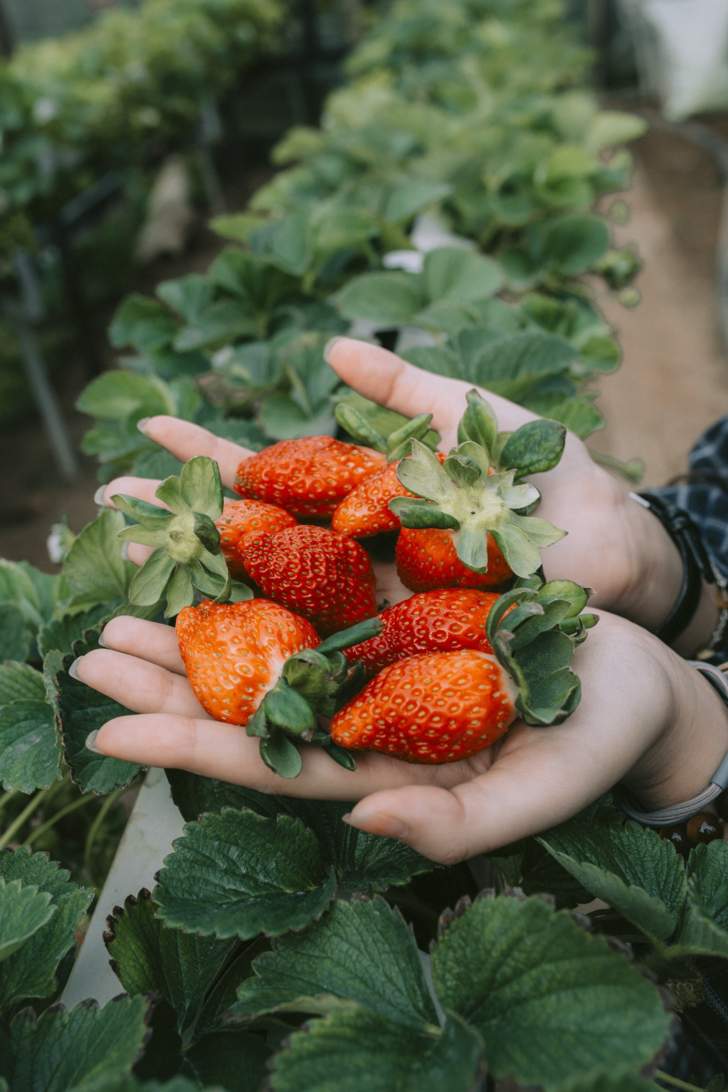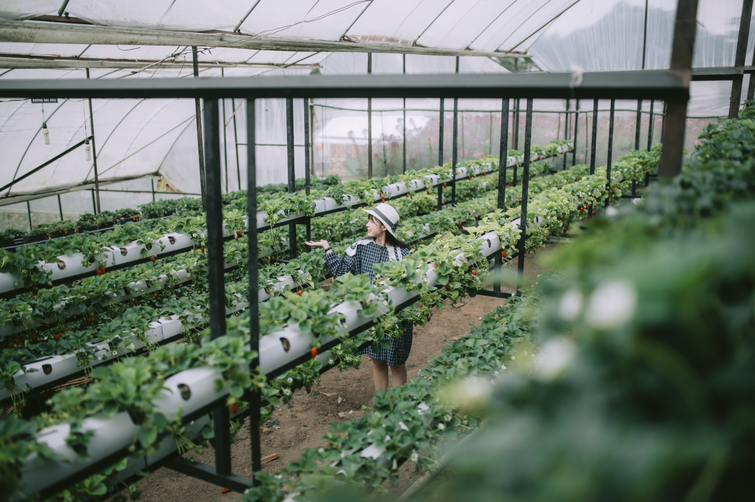 Điểm đến tiếp theo khi đi qua cầu thang sắc màu bạn sẽ được thấy một nông trại công nghệ cao với những vườn dâu New Zealand chín mộng nước, hãy nhẹ nhàng chạm vào những quả dâu đang căng tròn chín mọng, rồi nhẹ nhàng hái ngồi đó thưởng thức những quả dâu ngọt lịm khiến đôi môi bạn cũng phải ửng hồng.