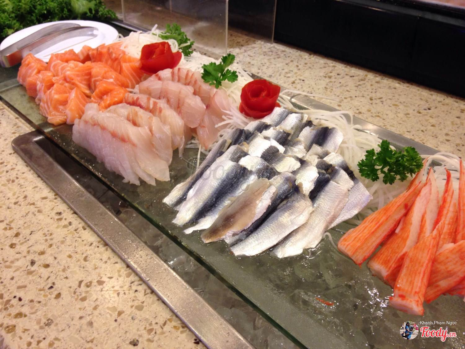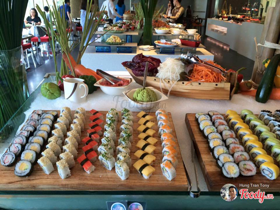 Ngoài quầy hải sản hoành tráng ra, tiệc buffet tối còn có quầy sashimi và sushi cũng khá đa dạng và tươi ngon. Ảnh: Foody