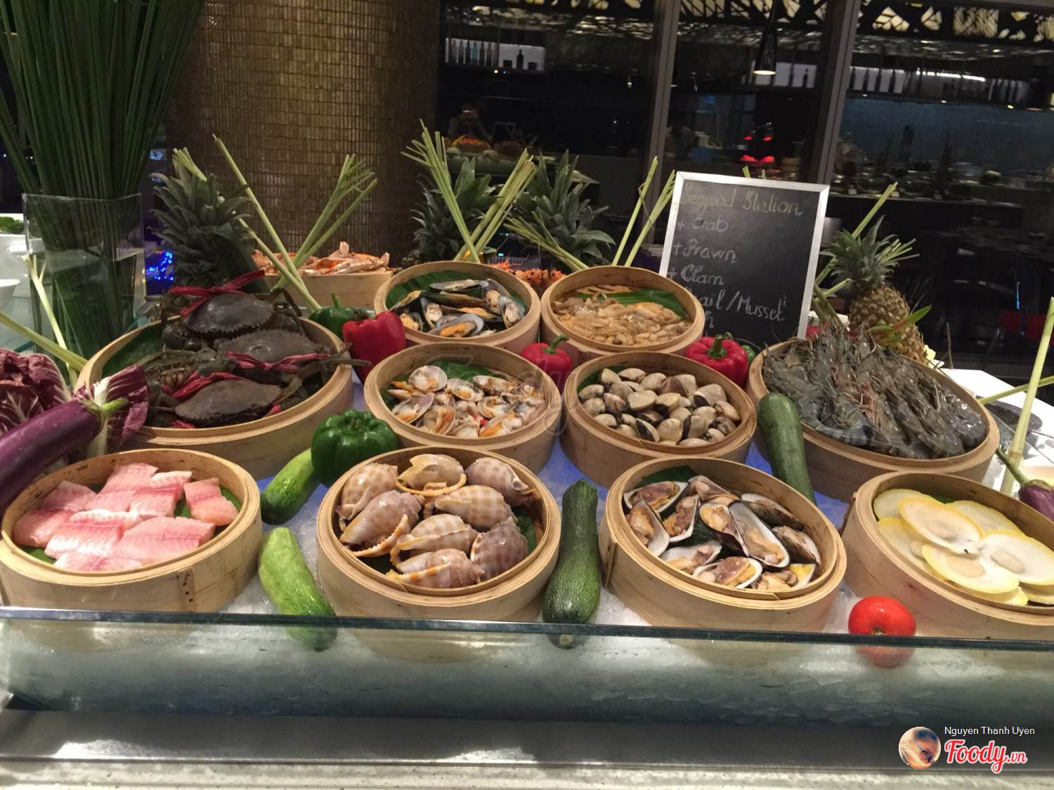 Buffet hải sản tại Nineteen rất ấn tượng, vị món ăn đậm đà, nguyên liệu hải sản lại tươi ngon và đặc biệt là cách chế biến rất phong phú, đa dạng. Ảnh: Foody