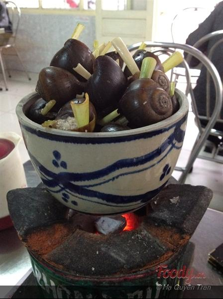 Ai đến đà lạt mà chưa ăn ốc nhồi thịt hay lẩu đuôi bò tại đây thì thật là đáng tiếc, hihi, mình được bạn dẫn đến đây ăn rồi nè, thích nhất là món ốc nhồi thịt nướng, gọi là nướng thôi chứ thực ra thì ốc đã được hấp chín ~.~, chỉ là để lên lò than nóng cho hơi ấm thôi, ốc chấm với mắm gừng ăn rất ấm người. 1 phần 80K có khoảng 16 - 18 con ốc, 1 mình mình ăn hết veo trong vòng 10', hihi. – Hạ Quyên