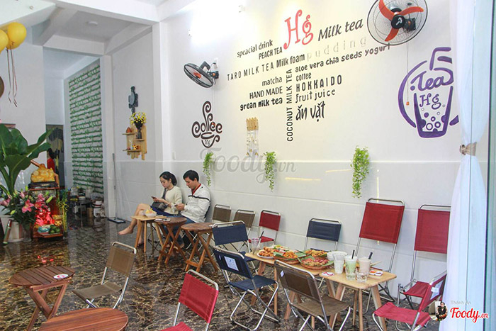 Mặc dù mới đi vào hoạt động nhưng quán cũng chịu khó cập nhật nhiều món mới hấp dẫn lắm nha. Ngoài các loại trà sữa truyền thống, trà sữa thái xanh, trà sữa khoai môn, socola, HG – Milktea & Coffee còn có các loại trà sữa nổi tiếng lừng danh như: trà sữa matcha, trà sữa trân châu trắng, trà sữa hokkaido… Đó là chưa kể đến các dòng trà trái cây với hương vị của kiwi, nho, đào, dâu, quất… Trà sữa được quán tự nấu từ cốt trà đen và sữa kem Nhật Bản, đem đến hương vị thơm ngon, béo ngậy, độ ngọt vừa phải, đảm bảo chất lượng và vệ sinh.