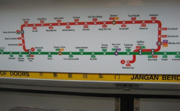 Ở Singapore có 5 tuyến MRT được phân biệt bằng 5 màu sắc khác nhau