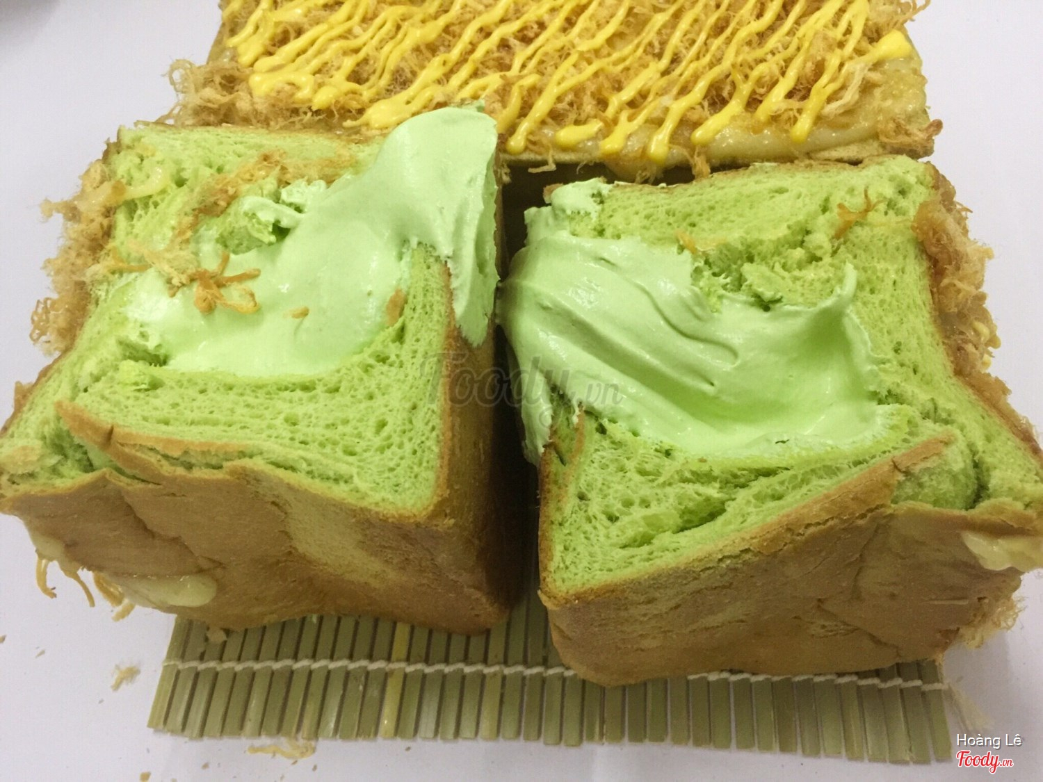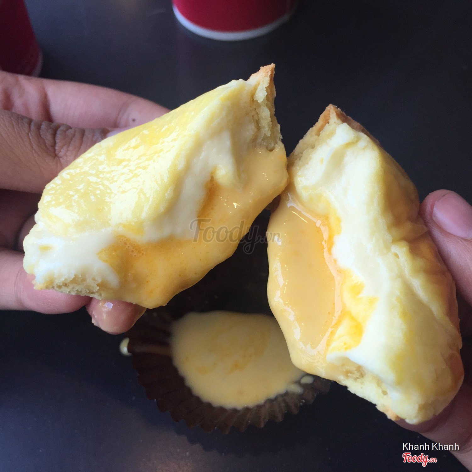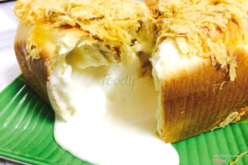 Một ổ như vầy từ 700gr, 5 6 người chia nhau ăn còn thấy nhiều. Bánh nướng trong ngày nên lúc nào cũng thơm bơ, nóng hổi. Nhân phô mai thật 100% béo ngậy vô đối. Ai thích lạ thì có thể đổi hương lá dứa. Vì mức độ "gây bão" cộng đồng ẩm thực quá lớn nên lúc nào bánh cũng hết sớm. Ai muốn ăn trong ngày thì phải đặt trước từ sáng sớm nha.