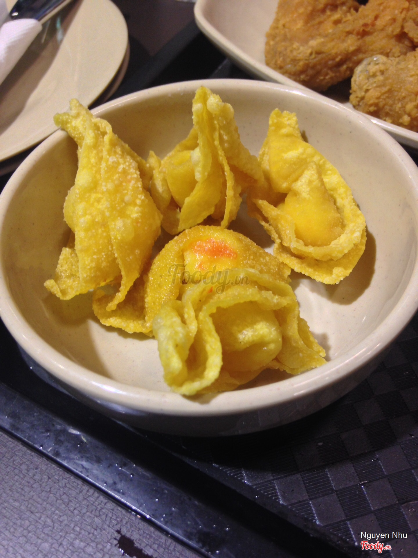 Chấm miếng sủi cảo với tương ớt và mayonaise, đưa lên miệng rồi cắn qua lớp vỏ giòn rụm đó, dòng sốt phô mai mềm mại, béo ngậy tràn ra, hương thơm bắt đầu lan tỏa hòa quyện cùng nhân thịt ngon xuất sắc.