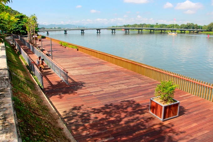 Tuyến đường đi bộ lót sàn gỗ lim dài hơn 380m, rộng 4m được xây dựng ở bờ nam sông Hương từ tháng 2 với tổng kinh phí 64 tỷ đồng. Đây là công trình thí điểm nằm trong dự án quy hoạch chi tiết hai bờ sông Hương, kinh phí 6 triệu USD do cơ quan Hợp tác quốc tế Hàn Quốc (KOICA) tài trợ.