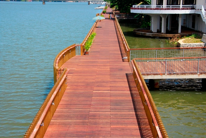 Đây chính là một góc nhỏ của công trình tuyến đường đi bộ lót sàn gỗ lim dài hơn 380 m ven sông Hương đã hoàn thành sau hơn 8 tháng thi công