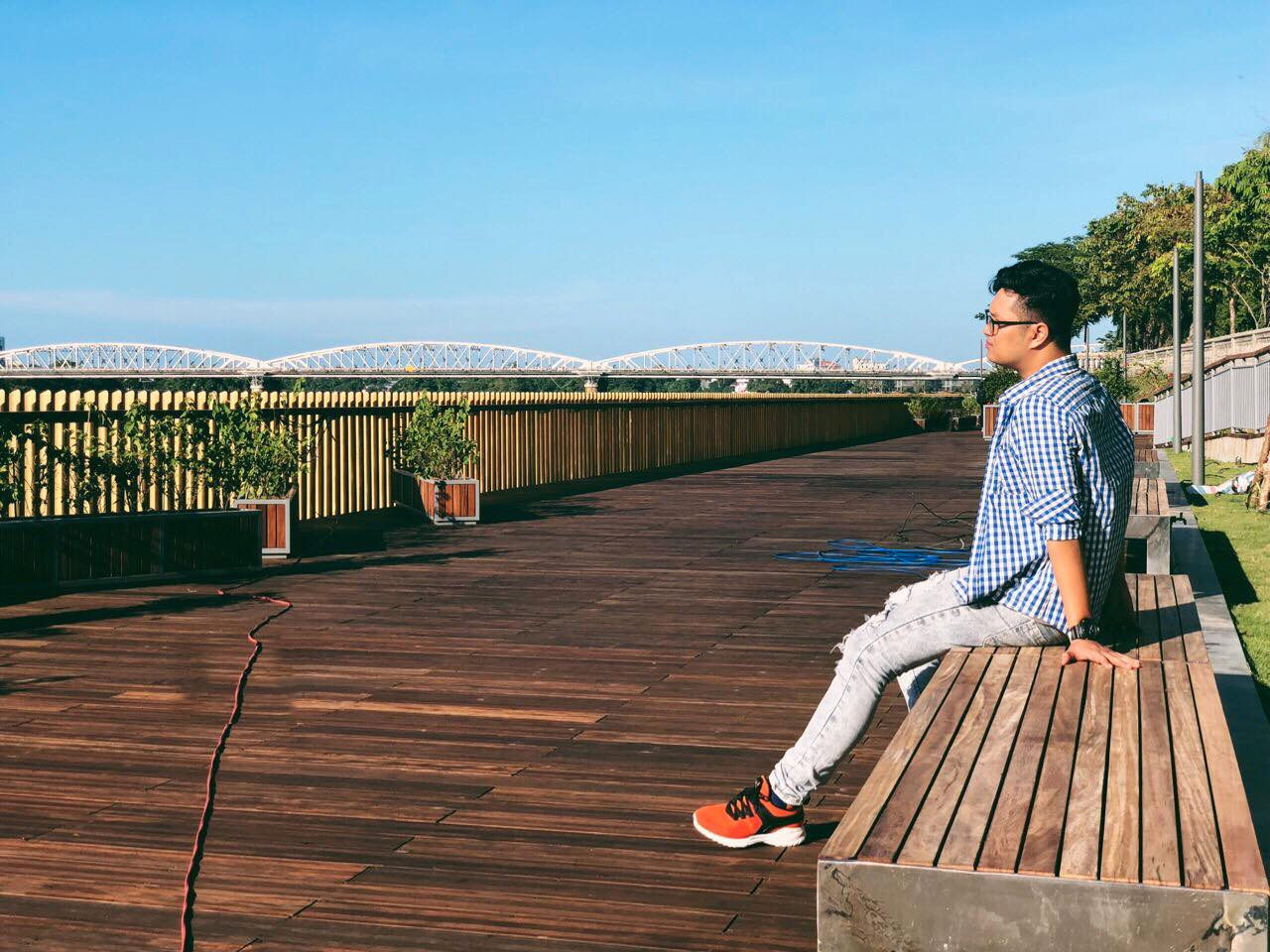 Tuyến đường đi bộ chưa đưa vào sử dụng nhưng nhiều người dân Huế đã tranh thủ trời nắng ráo đến chụp ảnh. Và đây chính là địa điểm sống ảo đã làm CĐM điên đảo dạo gần đây.