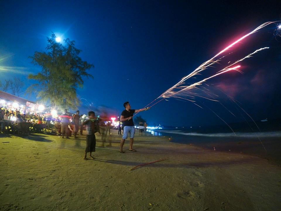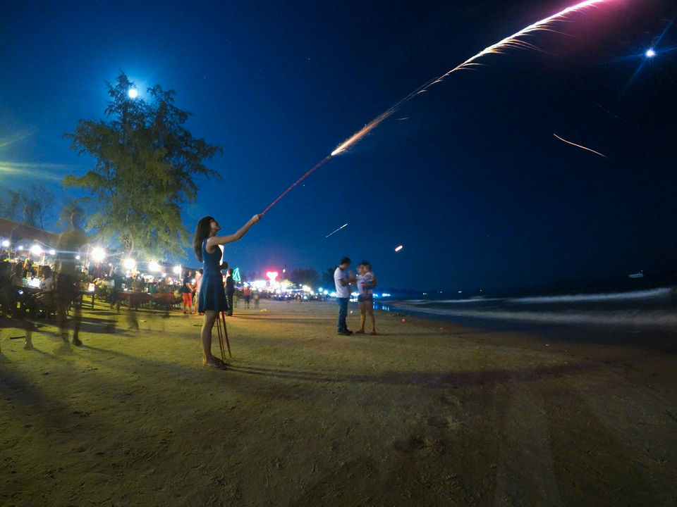 Điều mình thích nhất ngồi ở bờ biển Serendipity trên những ghế mây lót đêm huyền thoại của Campuchia, vừa uống bia, vừa ngắm biển, và đặc biệt là ngắm pháo hoa, phải nói là vui như Tếtttttt. Mình có thể tự mua pháo hoa và đèn trời để đốt, rất nhiều đứa trẻ bán dạo ở đây.