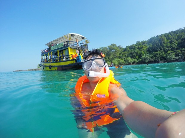 Tour tham quan nhiều đảo (khoảng 8$) (1pm – 8pm) (nên đi): bao gồm câu cá, snokerling (bơi ngắm san hô), tắm và ngắm hoàng hôn ở Long Beach (cách mặt trước cửa đảo 40′ đi bộ băng rừng), Long Beach là bãi đẹp nhất Koh Rong. Tối được chở đi ngắm plankton, cái này nói sau, vô cùng thú vị.