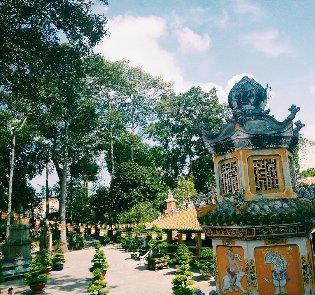 "Những dịp rằm, lễ tiết Phật giáo hoặc đơn giản muốn lòng mình thanh thản tôi đều ghé ghé chùa. Ngôi chùa níu chân du khách không chỉ bởi nét cổ kính mà còn vì không gian thoáng đãng như đi vào khu vườn rộng lớn, rợp bóng cây", anh Công (TP Thủ Dầu Một) chia sẻ. Windy Lee trên Instagram