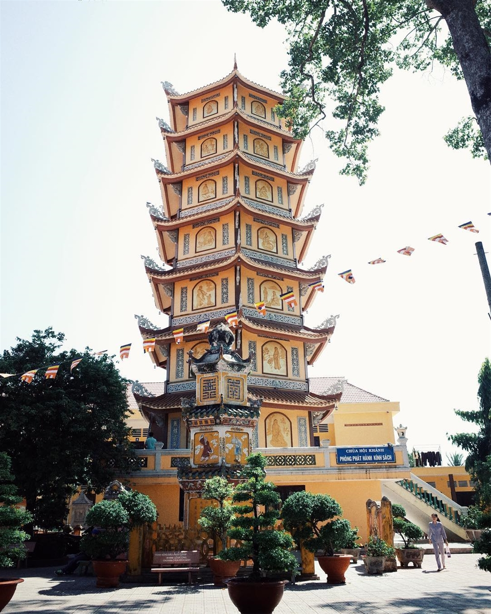 Chùa Hội Khánh đã qua nhiều lần trùng tu tôn tạo nhưng cơ bản vẫn giữ được nét kiến trúc cổ với 700 m2 diện tích gồm chánh điện, giảng đường, Đông lang và Tây lang, bảo tháp...Ảnh: Chiêu Kim Quỳnh trên Instagram