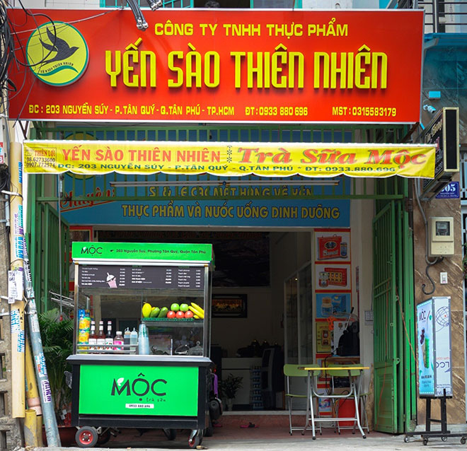 Quán kết hợp với của hàng Yến Sào Thiên Nhiên và được phủ một màu xanh tươi mát, thể hiện sự bình yên của thiên nhiên cây cỏ.