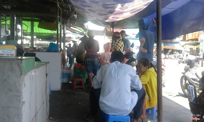 7.6Tuyệt vờiTiếng lành đồn xa. Mình xem trên mạng thấy quán bánh canh bộ xắt cầu cá lóc là ngon nhất. Tuy nhiên sau khi khảo sát 1 vài người dân trong lúc cafe cũng như mấy bác xe ôm thì mình lại đây. Người dân hay gọi đây là chợ "lạc hồng" còn bảng hiệu của chợ ghi "chợ bà mụ". Mới đầu mình nghĩ chắc quánh nằm kế chợ thui. Hóa ra chỉ làm 1 sạp bán trong chợ. Dưới cái nắng kinh khủng cả 13h trưa mà mình đợi gần 15 phút để được thưởng thức một trong những đặc sản bến tre. Quả là xứng đáng. Nước sánh mịn rất tuyệt. Thịt vịt ta nói nó dai bá phát luôn. Lâu lâu có vài viên thịt bầm cuộc tròn cực thích. Bột cứng và dai nữa. Thịt ngặp mặt mà giá chỉ 17k. ...View more