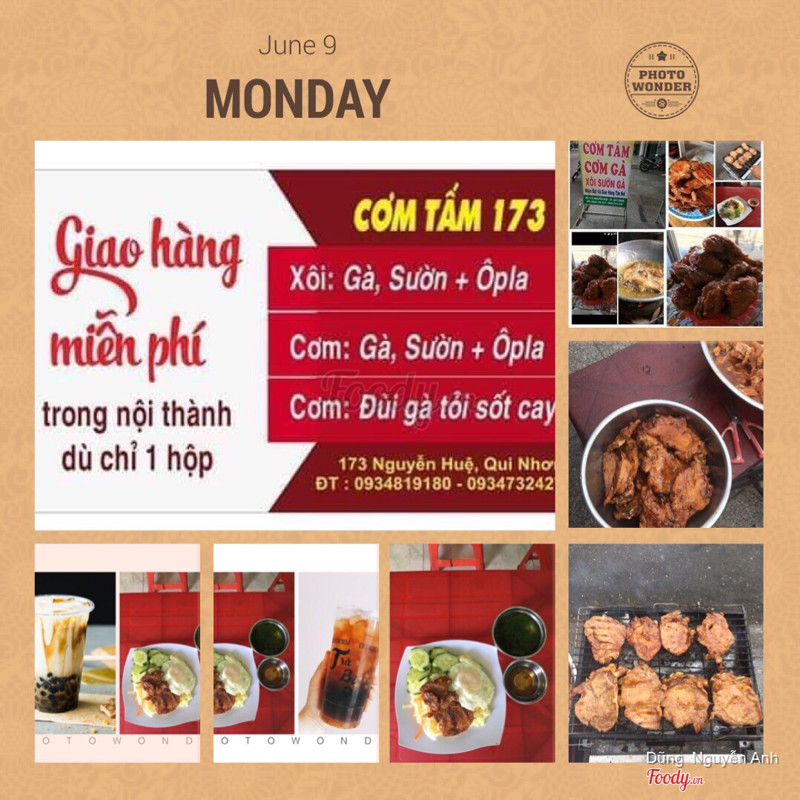 8.6Cơm tấm ngon ! Free ship 0934819180Đã đủ món rồi , khách gọi gì e ship nhan ! 😍 Menu Cơm tấm sườn , ốp la : 20k Cơm tấm thịt kho trứng : 20k Cơm tấm gà : 25k + gà kho sả + đùi tỏi sốt cay Gọi : 0934819180 free ship Địa chỉ : 173 nguyễn huệ, quy nhơn ...Xem thêm