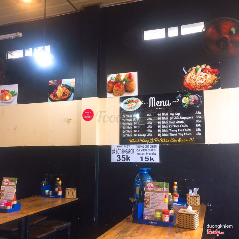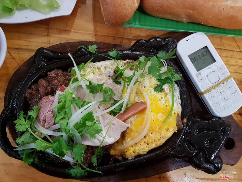 7.2Bò Né & Mì Cay Đệ NhấtQuán có mặt bằng thoáng mát , thực đơn khá đa dạng như bò né , beep steak, mì cay , gà sốt singapore nhưng buổi sáng chỉ có 1 sự lựa chọn đó là bò né. Thực sự thì bò né ở đây khá bình thường , vài miếng bò được ướp sẵn xào sơ qua rồi 1 cái trứng opla vừa chín tới , bò bình thường , opla khá ngon. Điểm trừ là nước chấm , khá lạ chắc là quán tự pha chế , chấm vào không tăng thêm vị cho món ăn . Ăn kèm là dĩa rau chua ngọt , khá ít rau nên ăn hơi thiếu cho 1 đứa thích rau như mình. ^^ ...Xem thêm