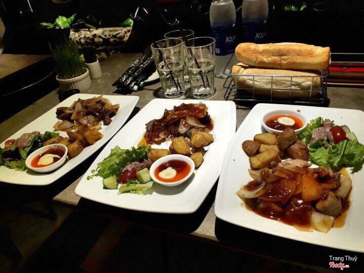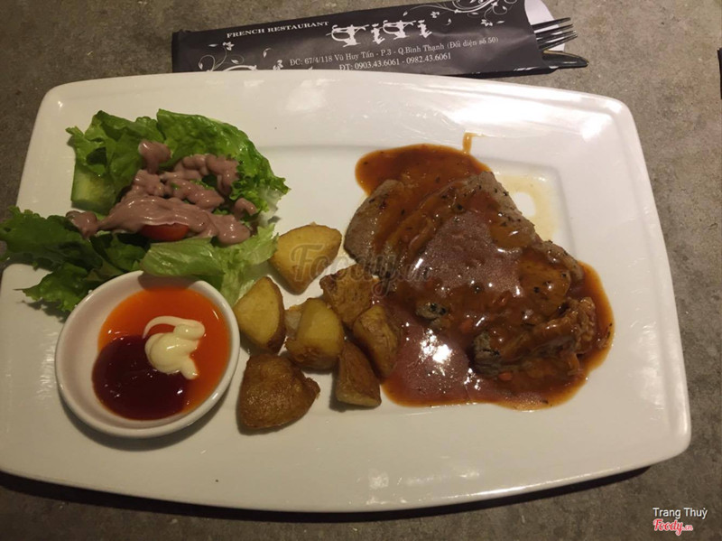 7.0Món Pháp ngon mê liQuán nằm ở ngay đường Lí Thường Kiệt, gần rạp phim Empire với quán bún đậu mắm tôm, quán nhỏ nên xe ô tô phải đậu dưới đường, xe máy cũng để tầm 6-7 chiếc là vừa. Mấy bạn thường ăn TIti ở thành phố chắc không còn gì xa lạ nhỉ, đặc biệt ở Võ Huy Tấn, Nguyễn Trãi, à hình như Thành phố mới cũng có chi nhánh Titi. Quán Pháp nhưng thức ăn giá Việt Nam, mỗi món chỉ 70k, 80k thôi, nước suối thì 10k. Phải nói Titi nổi tiếng với món ăn kèm sốt ngon, đa dạng: phô mai, tiêu đen, sốt BBQ... Mình không ăn cay được nên thích ăn nhất sốt BBQ và tiêu đen, kèm bánh mì nữa, bánh mì ở đây không như chỗ khác đâu, nó được quét vị rồi nướng thì phải nên ngon cực, chấm với sốt nữa ^^ Trên hình là mình ăn: - Bò beefsteak - Nai sốt BBQ - Bò sốt tiêu đen -Đà điêu sốt BBQ ...Xem thêm