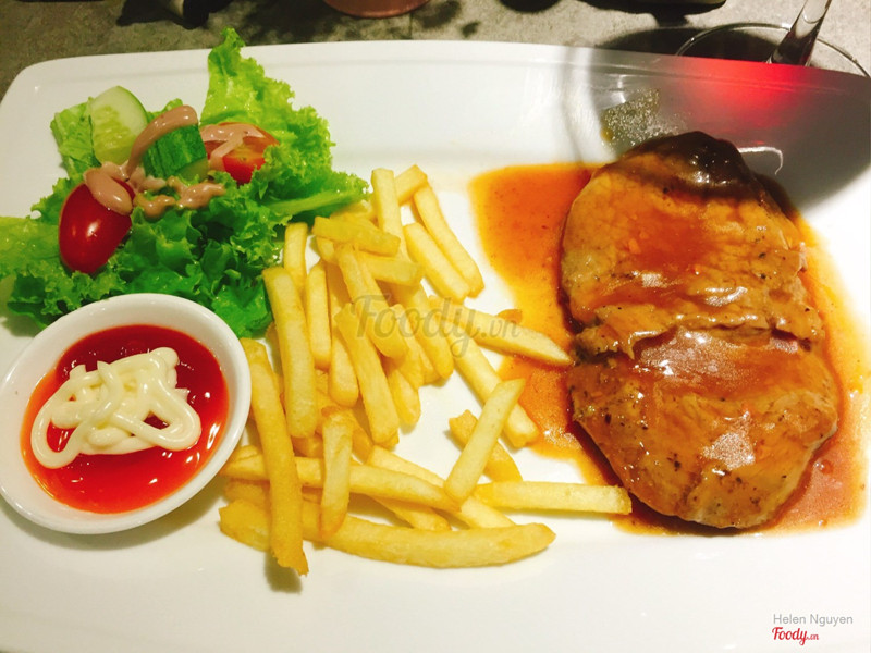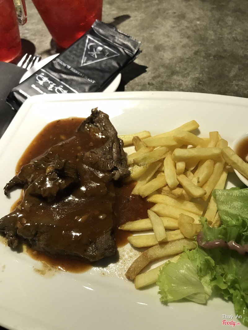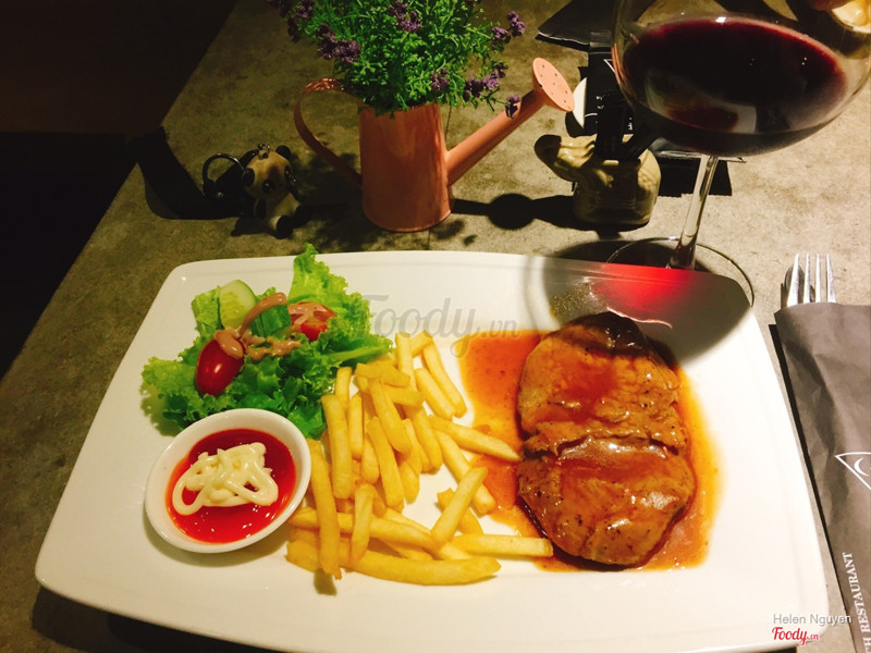 7.6Ghiền món âu...Quán ở khu vực trung tâm rất dễ tìm... không gian tuy hơi nhỏ nhưng thiết kế bắt mắt và thoáng... lúc mình vào tuy nhìu người, bàn san sát nhau nhưng ai cũng lịch sự nói chuyện khẽ làm mình thấy rất ấm áp... bạn mình gọi spaghetti carbonara còn mình thì gọi sườn cừu sốt bbq thưởng thức với vang đỏ... món ăn lên nhìn rất hấp dẫn và bắt mắt... pasta thì ăn lạ miệng tuy nhiên khác với những chỗ mình hay ăn và cảm giác dễ ngán hơn bình thường... sườn cừu thì ăn cũng khá chứ hok xuất xắc... nói chung thì nếu tiếp khách hay muốn đổi vị thì vô đây ăn được còn muốn ngon xuất sắc thì mình hok dám khen... khi nào có dịp sẽ ghé thử beefsteak... ...Xem thêm