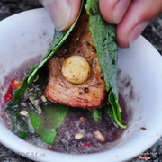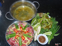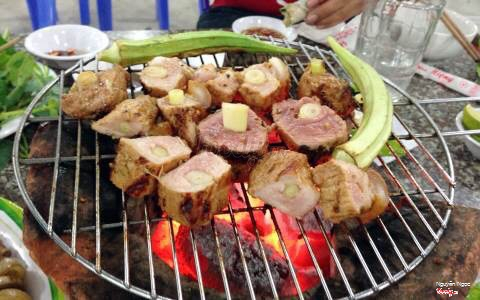 Bò được xắt thành từng miếng nhỏ, tẩm lên chút hạt nêm, nước mắm và nước sốt độc quyền của nhà hàng nhưng nướng xong vô cùng thơm ngon, dậy mùi. Chính cách ướp không quá cầu kỳ giúp cho miếng bò ăn vẫn thấy độ ngọt, thanh do vị thịt mang lại mà không hề bị lấn át bởi gia vị lẫn lộn như nhiều quán khác.