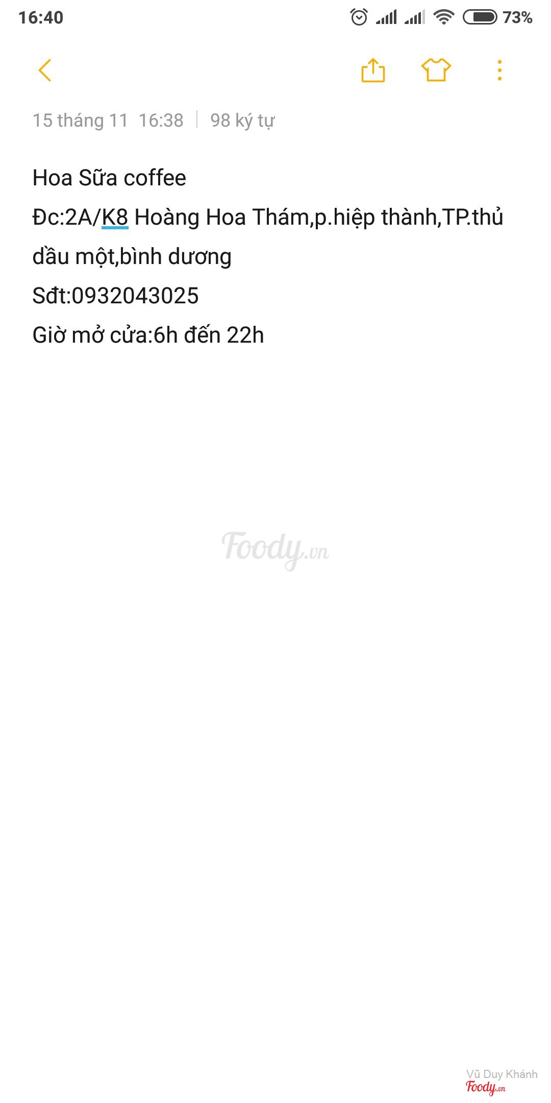 Cafe Hoa Sữa K8