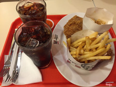 7.4Cũng tạm đượcBữa mấy đứa bạn hẹn nhau đi Big C Dĩ An chơi. Chưa đứa nào ăn sáng cả nên kéo nhau với KFC ăn. Lúc đó cũng 8h30 - 9h rồi mà tới quầy mua nhân viên kêu chờ 10p nữa. Đói T.T Kéo nhau ngồi ngay góc xa nhất của KFC, ngay sát mấy bàn party sinh nhật của 1 bé gái. Thấy nhân viên trang trí, bày biện, treo bóng bay thấy cũng thích ghê. 4 đứa, kêu thử Combo trong chương trình Combo 4 miếng gà + Khoai jumbo cực khủng. Nhân viên đưa luôn cho 4 miếng gà, còn kêu tí sẽ đem khoai ra sau. Nói chung là ăn không thấy ngon như bình thường, thịt gà bở và không giòn mấy. Một lát sau thì nhân viên đem ra khoai jumbo, ăn cũng tạm, có điều hơi mặn tí. Hình như do hơi sớm nên thấy khá vắng, lát sau thì mới thấy đông. ...Xem thêm