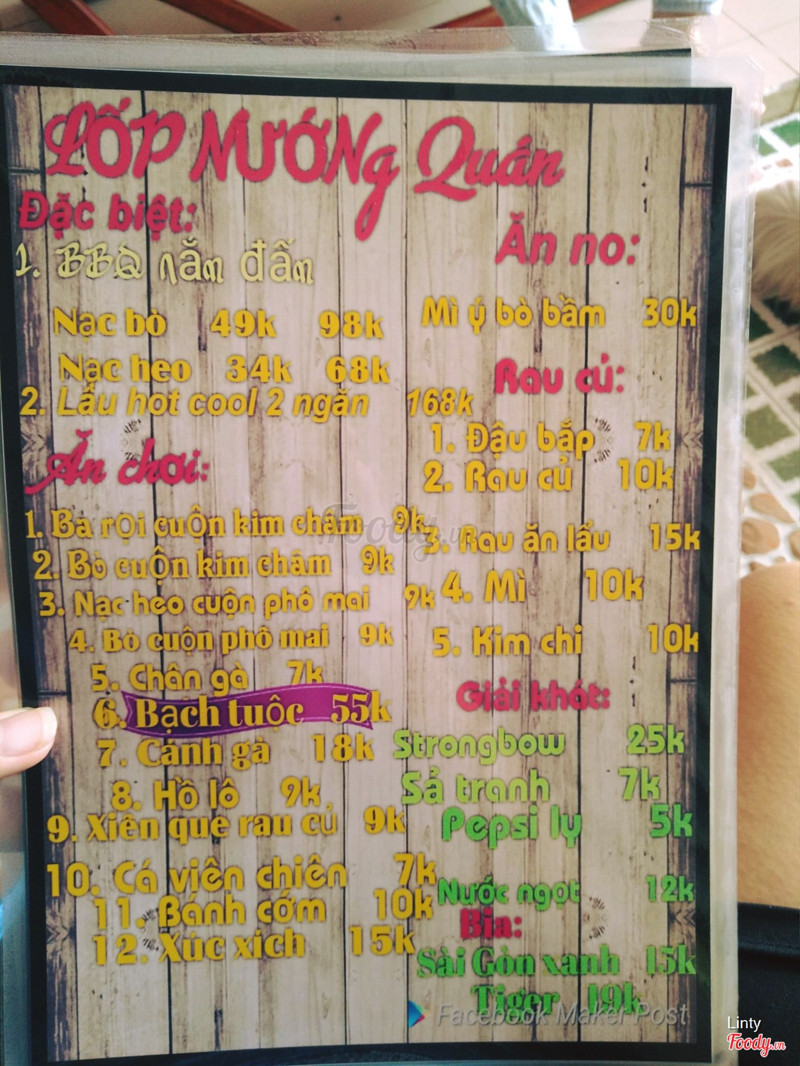 6.8Tuyệt vờiQuán với không gian ngọt ngào,đồ ăn tươi ngon bổ rẻ,hãy đến với LỐP NƯỚNG để thưởng thức BBQ và lẩu hai ngăn đậm chất hàn quốc nhé... ...Xem thêm