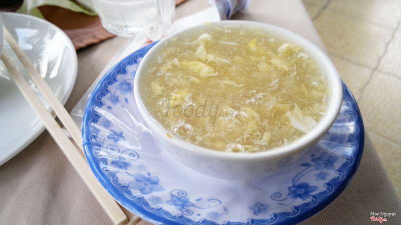 Súp Cua Tôm với cái dĩa bên dưới không được "nhà hàng" cho lắm