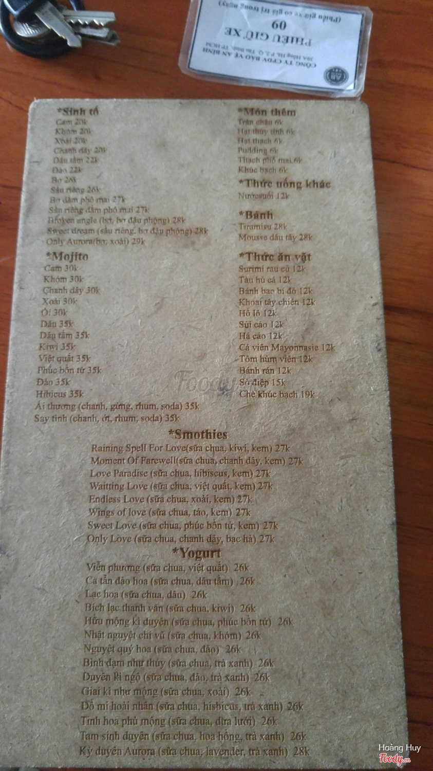Ghi chú đặt bàn