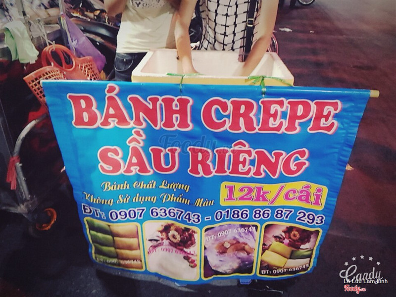 7.8Bánh Crepe Sầu Riêng, Trà XanhBánh crepe sầu riêng 10k/cái, mặc dù ít sầu riêng, kem nhiều nhưng bánh ăn rất ngon và không bị ngán ^^ Hơn nữa, chị bán bánh thân thiện và cũng nhiệt tình lắm, trời mưa to mà cũng ráng xách xe chạy đi giao hàng nữa ^^ bánh trà xanh thì mình chưa ăn thử bao giờ nhưng riêng bánh crepe này thì mình bị ghiền rồi nha :3 ...Xem thêm
