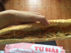 7.0bánh mì que Tứ HảiThe english translation for bánh mì que is supposedly breadstick. I see it more as a skinny sub sandwich version of the traditonal bánh mì. The bread is fresh and crunchy. There is pate, shredded dry meat, pickled vegetables, and the entire sandwich is toasted in a hot charcoal grill. The price is pretty good at 7,000vnd per sandwich. I sometimes get this for dinner when I feel like eating something light. ...Xem thêm