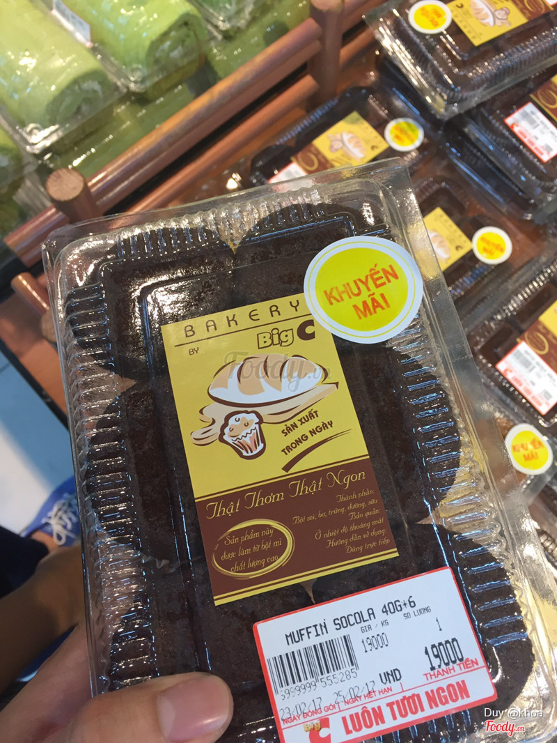 8.2Big C Bakery📍 vị trí của tủ bánh nằm trong siêu thị big c ở tầng trên cùng 🏡 không gian ngay bên trong siêu thì, bánh ở đây được bày trí sẵn với lối đi rộng nên rất dễ lựa chọn 📝 trên các tủ bánh đều có ghi rõ ràng các loại bánh khác nhau. 🍽🍧mình thì hay mua bánh cup cake sô cô la ở đây, bánh mềm lắm mà thơm sô cô la nữa, lớp bông lan vừa mềm hoà chút đăng đắng của sô cô la rồi chút ngọt nữa thiệt là tuyệt lắm 💰 giá cả 19k một hộp 6 cái 🕴 phục vụ ổn ...View more