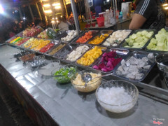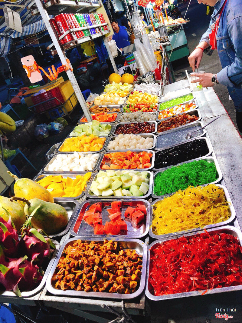 7.8Trái cây xô tự chọnĐi chợ đêm Trần Phú thấy ngay cổng vào có quán mà người ta đông quá trời luôn rồi chỗ ngồi cũng thú vị nên quyết định vào ăn thử. Mỗi người được 1 cái ly nhỏ, muốn gắp bao nhiêu trái cây thì gắp, có khá nhiều loại để lựa chọn, rồi rau câu, topping các loại. Xong rồi đưa ly cho người ta bỏ vào cái "xô" lớn hơn, thêm đá bào và sữa, siro mình thích mùi gì thì họ cho mùi đấy. Xong rồi mang ra bàn ngồi ăn thui :D Mình ngồi chỗ cái "sạp" to to, khá thú vị, ngồi bệt. Có điều nhóm thanh niên ngồi bên cạnh ồn quá, có mấy người mà giành muốn hết bàn của người ta nên khá khó chịu xíu. Các cô nhân viên khá vui vẻ nhiệt tình. Trái cây ok, mình chỉ gắp mỗi táo, lê, dưa gang thôi vì không thích mấy loại kia cho lắm. Giá rẻ nên cũng ủng hộ. ...Xem thêm