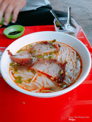 8.2Bún Bò Huế - Nguyễn KhuyếnCứ sáng cuối tuần là cả nhà mình thường đi ăn bún bò huế ở chỗ này. Quán nằm trên đường nguyễn khuyến, cùng phía với trường tiểu học ngô quyền. Quân thuộc quán lề đường nên bao rẻ, giá cả bình dân, chất lượng ổn. Như hình là 4 tô bún bò. Mỗi tô có thể dặn để thịt heo, để thịt bò hoặc để chả như hình. Do cô bán rẻ nên thịt bò khá là vụn nên bình thường mình chỉ gọi chả không. Chả như hình cô làm rất đặc biệt, cô người miền ngoài nên ăn bao đúng vị luôn, có cả sa tế để ăn kèm y như lúc mình đi du lịch Huế :3 ...View more