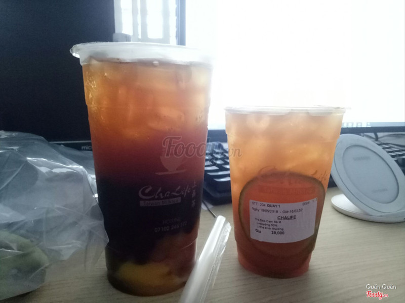 7.4ChaLife - Taiwan Milktea - Ngô QuyềnThấy trà sữa của quán này cũng khá là chất lượng nhe nên cũng bon chen order, thấy giá cả cũng ok lắm, mình thích uống ly cở lớn hơn nên nâng cấp ly thêm 5 hay 10k gì à cũng không quá cao đâu nhe, trân châu của quán thêm là 10k 1 phần cũng nhiều trân châu lắm ấy, nhân viên quán khá là thân thiện nhanh nhẹn, mình mới đậu xe là chạy ra đưa menu lựa món rồi khá ưng ý. mà dịp khuyến mãi mua hồng trà chân trân uống no nê luôn, còn trà đào cam sả uống không ngon j hêt ...Xem thêm