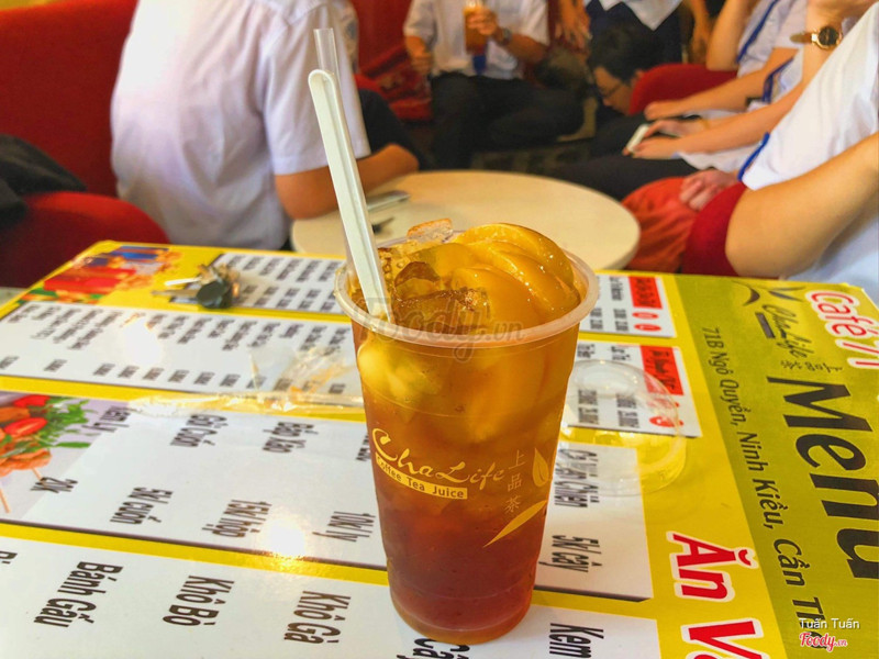 8.0ChaLife - Taiwan Milktea - Ngô QuyềnMình và lớp hay hẹn nhau ở đây, vì gần trường. Không gian quán nhỏ thôi à, ít bàn nên đi đông thì chèn cả xuống đất ngồi vì bàn và ghế rất to kh di chuyển được nhiều mà ngồi lại kh bao nhiêu. Thôi chắc ngồi vậy cho ấm cúng. Vì không gian nhỏ nên đi đông hay nói chuyện lớn tiếng tí là sẽ rất ồn. Nước ở đây thì cũng ổn, uống tạm thôi chứ kh đến xuất sắc hay đặc trưng gì cả. Ly của mình là trà đào, có tận 4 miếng đào, ly nước cũng to chắc khoảng 500ml. Thái độ nhân viên phục vụ cũng ổn luôn, kh đến mức tốt vì nhân viên khá hờ hợt với khách nhưng vẫn lịch sự. ...Xem thêm